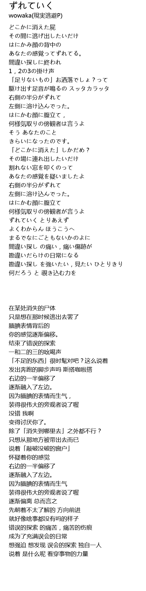 | 歌曲 | ずれていく |