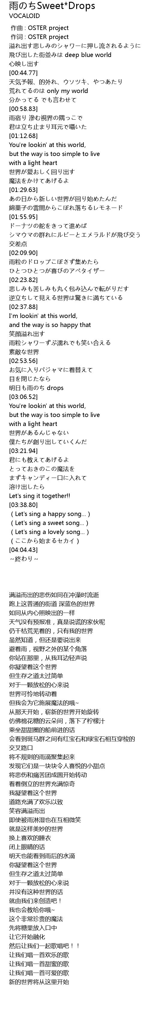 | [00:00.00] | zuo qu : OSTER project |