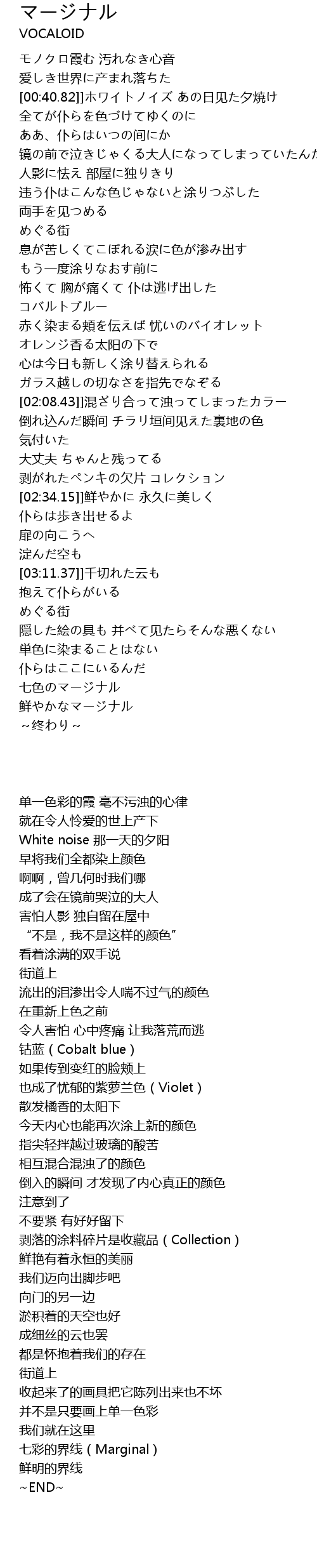 | [03:38.55] | 七色のマージナル |