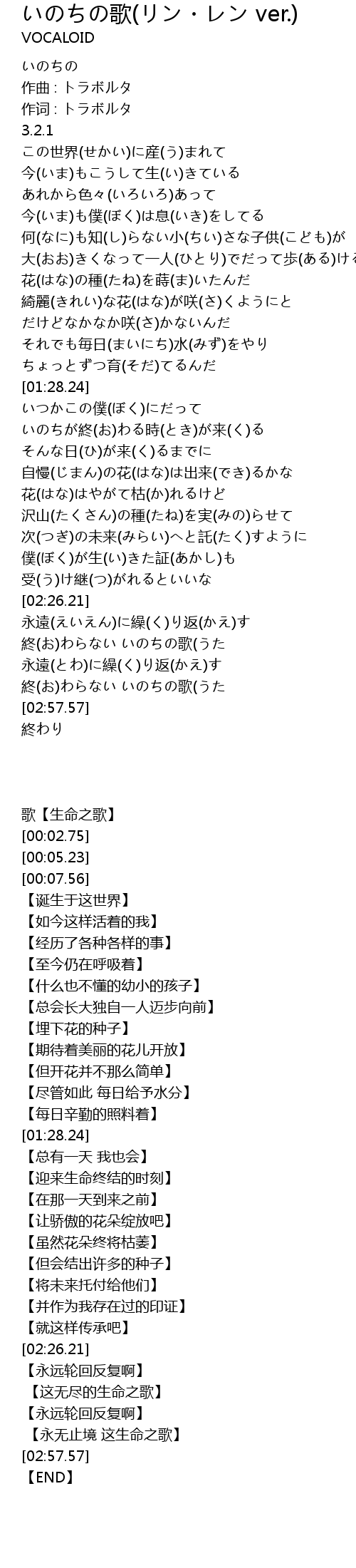 | [02:49.40] | 終(お)わらない いのちの歌(うた |