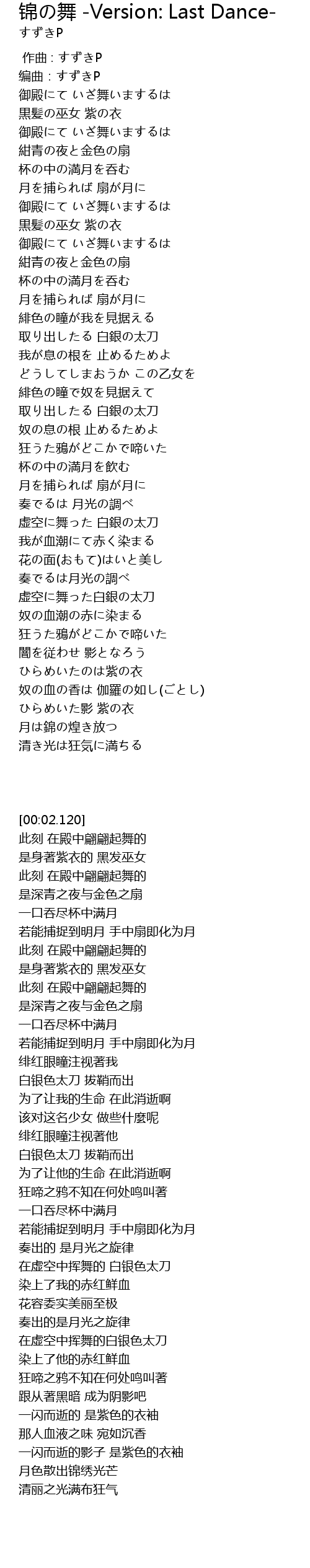 | [02:52.410] | ひらめいたのは紫の衣 |