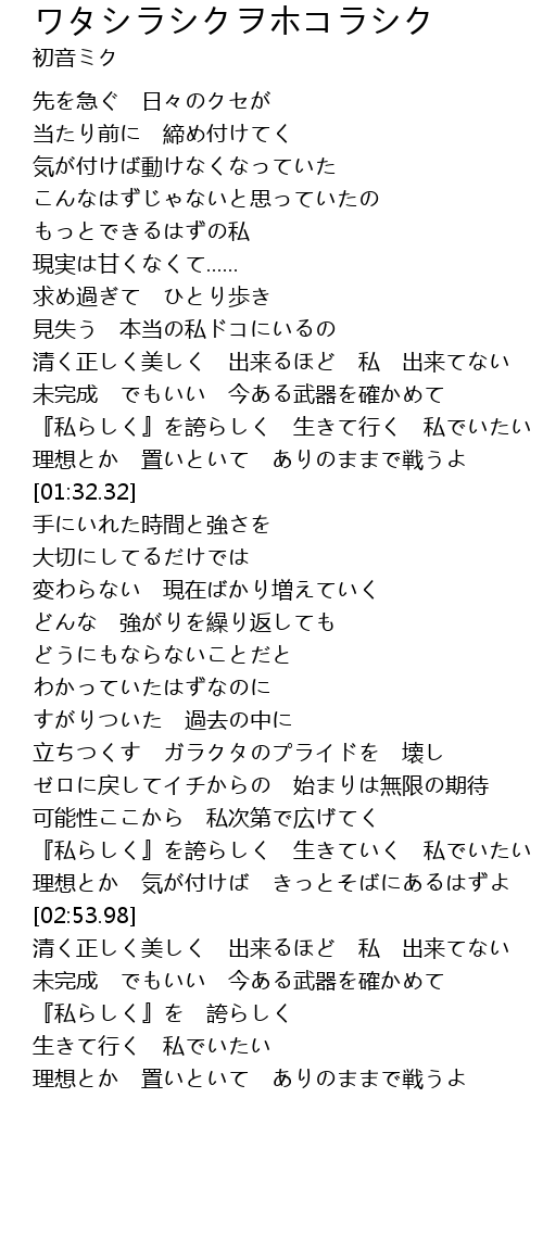 | [02:36.47] | 『私らしく』を誇らしく 生きていく 私でいたい |