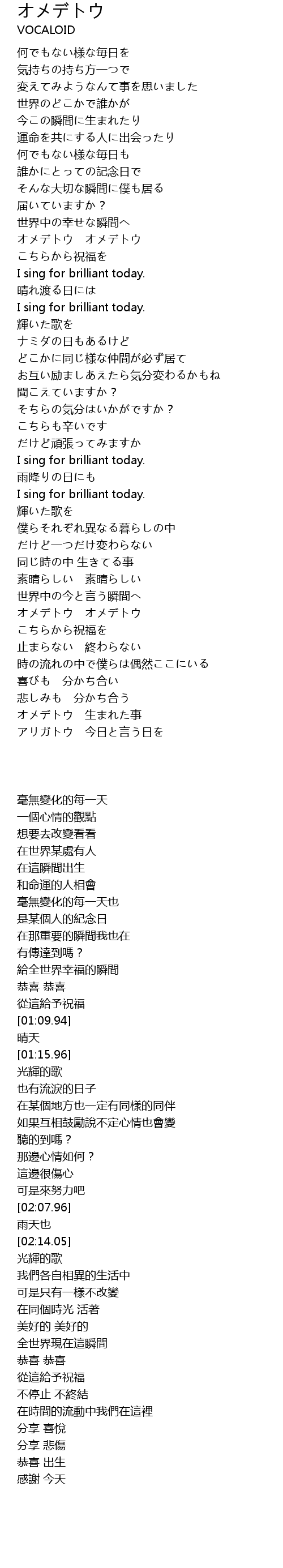 | [00:57.26] | 世界中の幸せな瞬間へ |