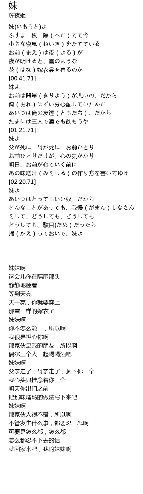 | [03:28.52] | 帰(かえ)っておいで、妹よ |