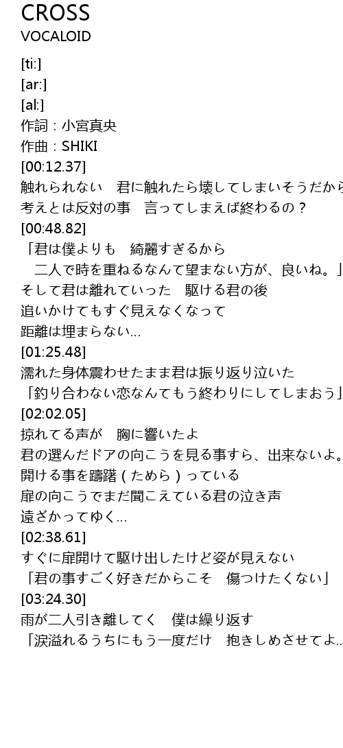 | [03:24.51] | 雨が二人引き離してく 僕は繰り返す |