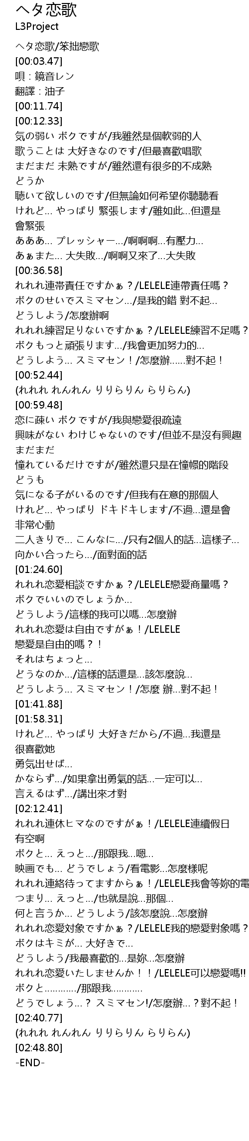 | [00:01.40] | ヘタ恋歌/笨拙戀歌 |