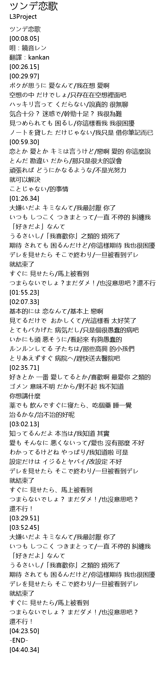 | [03:16.78] | デレを見せたら そこで終わり/一旦被看到デレ 就結束了 |