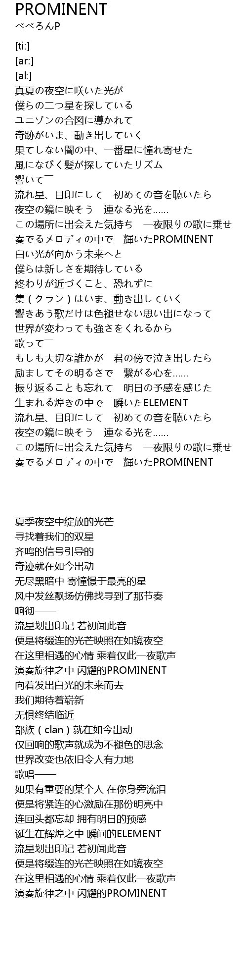 | [03:56.91] | 演奏旋律之中 闪耀的PROMINENT |