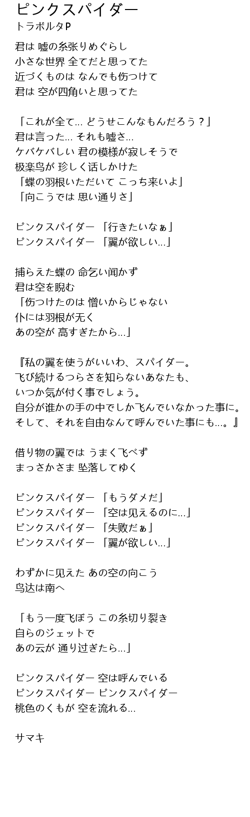| 歌曲 | ピンクスパイダー |
