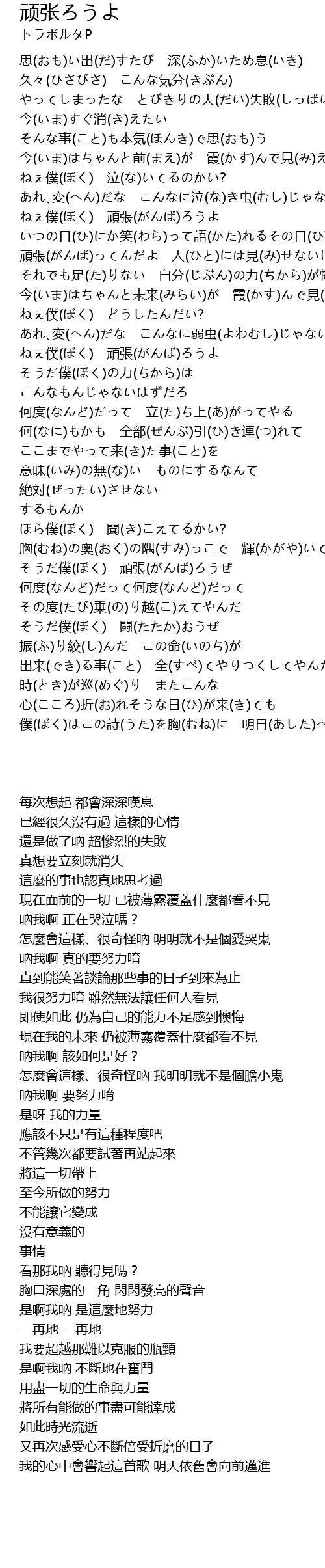 | [02:03.03] | ねぇ僕(ぼく) 頑張(がんば)ろうよ |
