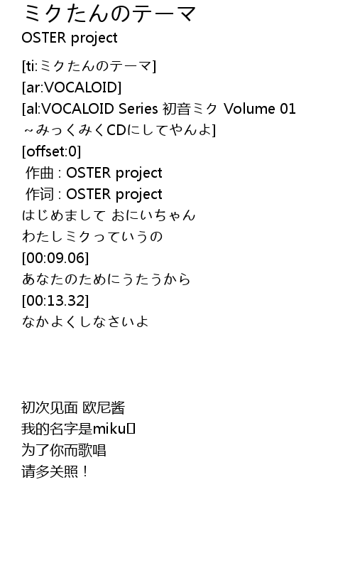 | [al:VOCALOID Series 初音ミク Volume 01 ~みっくみくCDにしてやんよ] | |