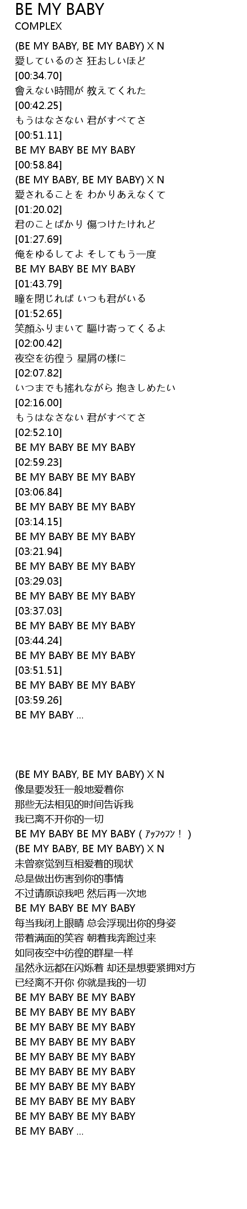 | [00:00.53] | (BE MY BABY, BE MY BABY) X N |