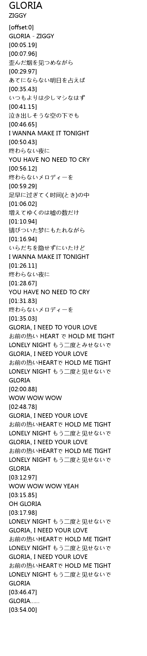| [03:23.34] | GLORIA, I NEED YOUR LOVE |