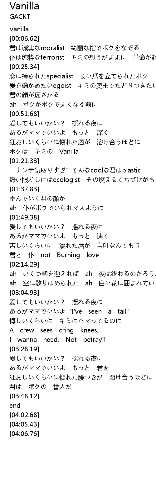 | [00:30.19] | 恋に缚られたspecialist 长い爪を立てられたボク |