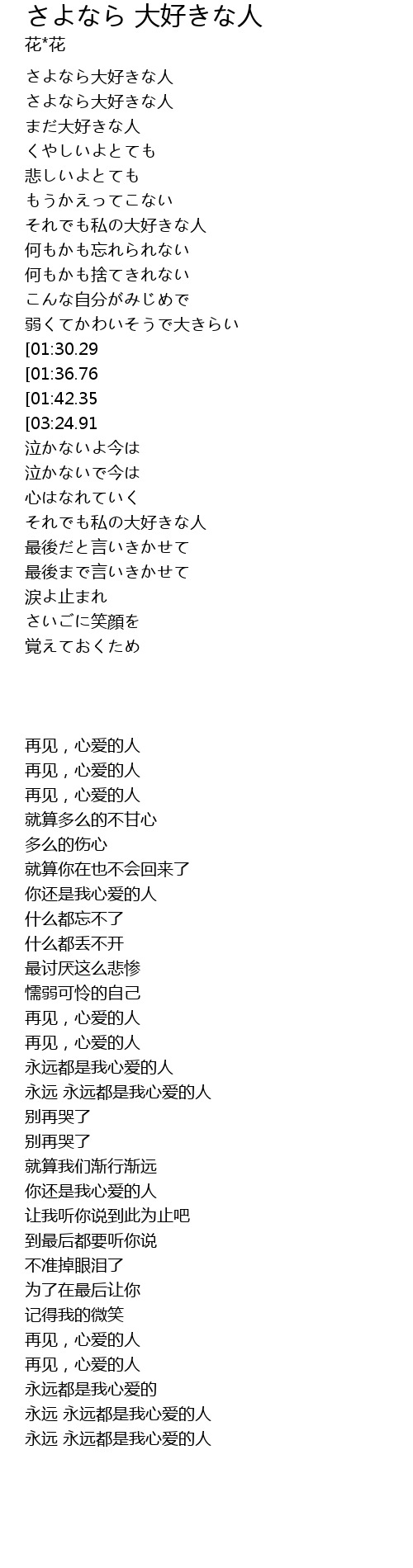 | [03:14.64][01:36.76] | さよなら大好きな人 |