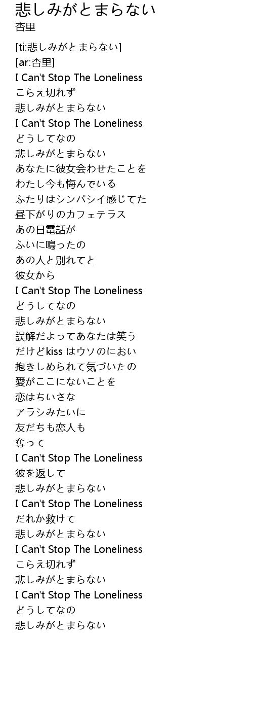 | [00:30.334] | I Can't Stop The Loneliness |