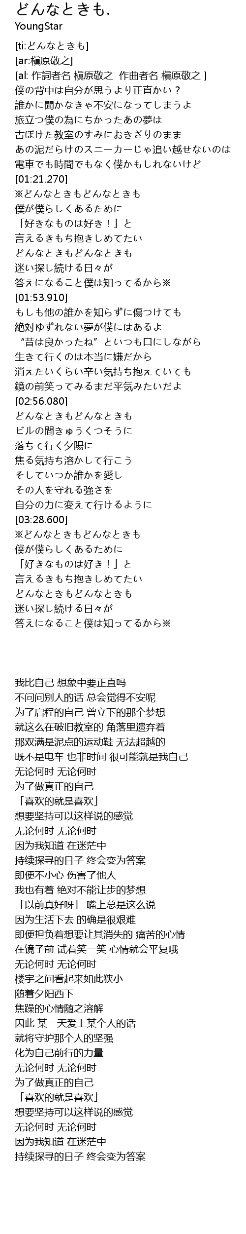 | [01:38.980] | どんなときもどんなときも |