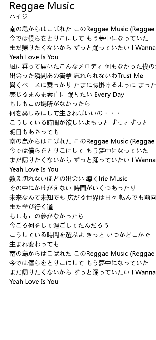 | 南の島からはこばれた このReggae Music (Reggae Music) 今では僕らをとりこにして もう夢中になっていた | |