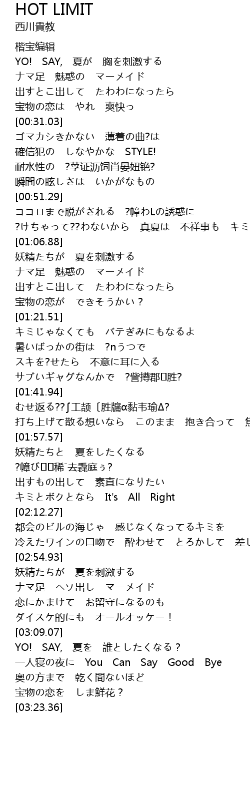 | [00:17.02] | YO! SAY, 夏が 胸を刺激する |
