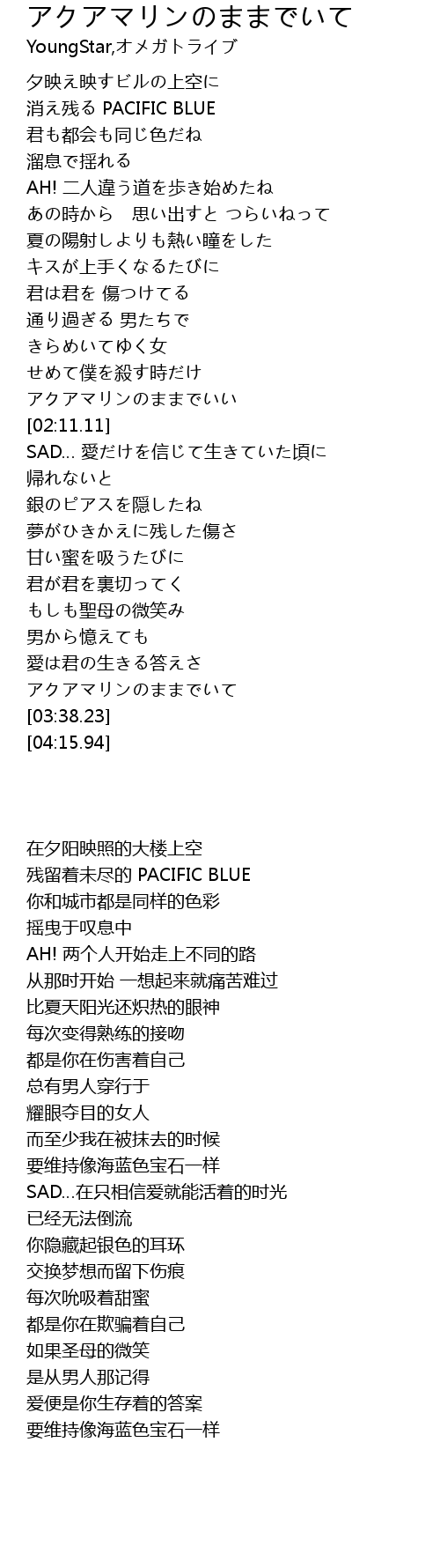 | [03:30.20] | アクアマリンのままでいて |