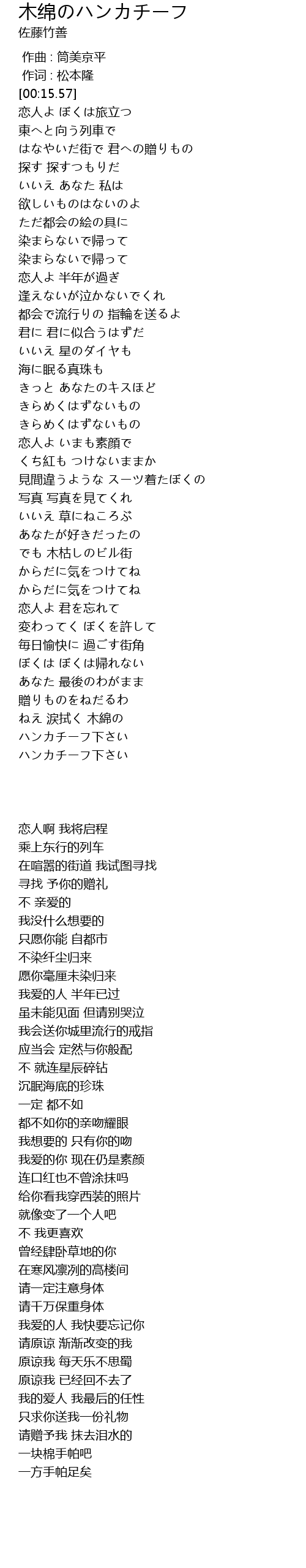 | [03:44.85] | ハンカチーフ下さい |