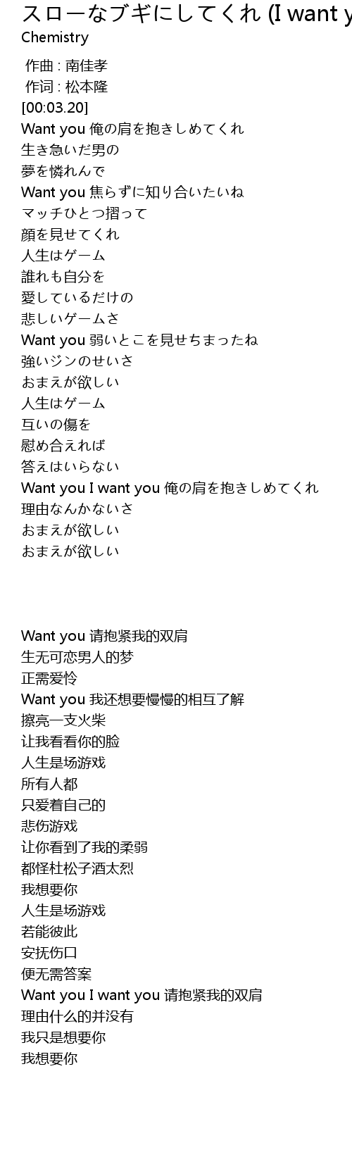 | [02:24.74] | Want you I want you 请抱紧我的双肩 |