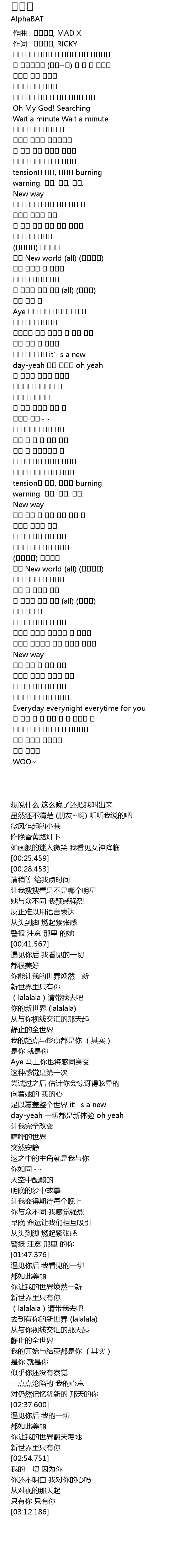 | [00:58.685] | 너의 New world (all) (라라라라) |