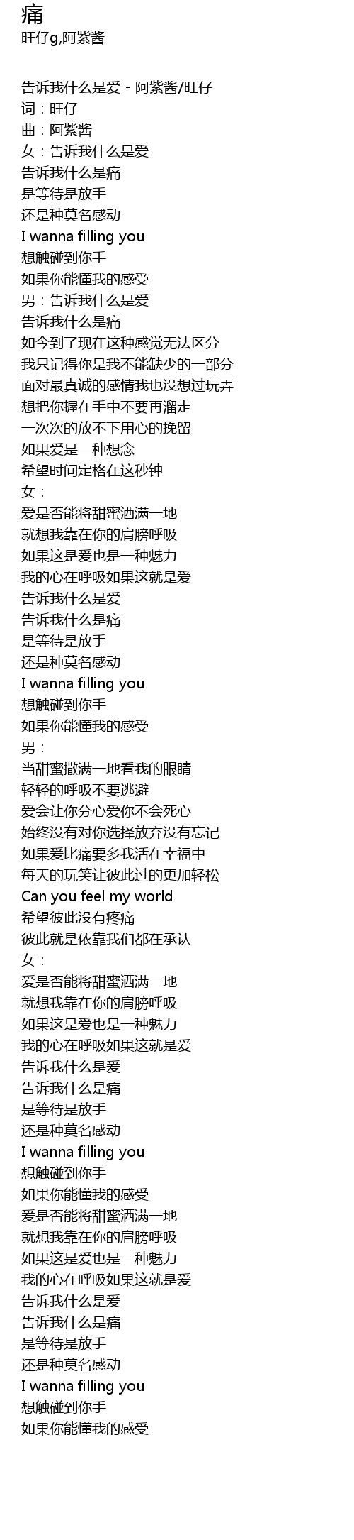 | 告诉我什么是爱 - 阿紫酱/旺仔 | |
