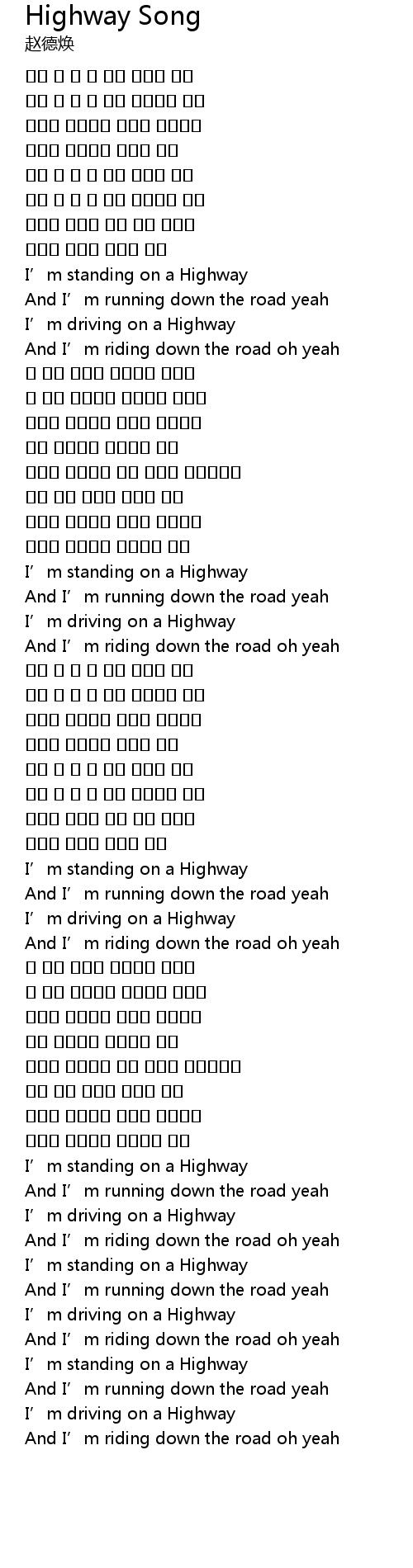 | I' m standing on a Highway | |