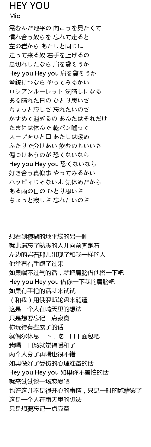 | [00:50.32] | Hey you Hey you 肩を貸そうか |