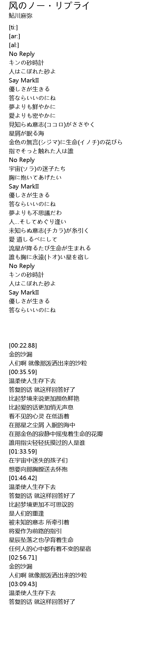 | [02:59.49] | キンの砂時計 |