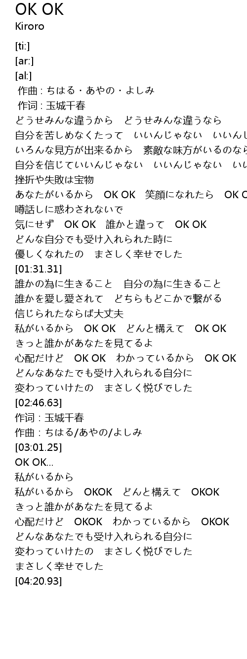 | [03:37.07] | 私がいるから OKOK どんと構えて OKOK |