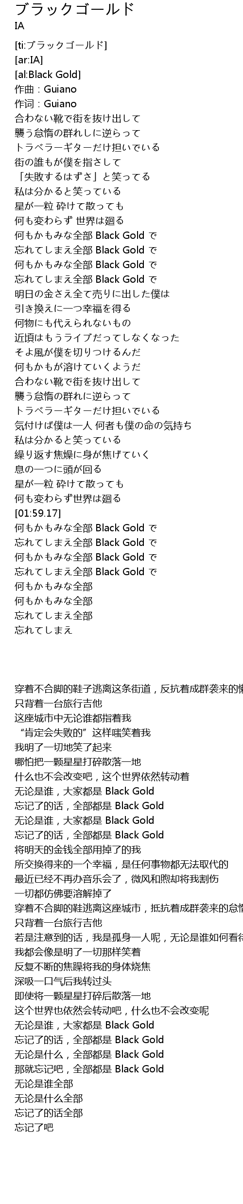 | [02:15.38] | 忘记了的话,全部都是 Black Gold |