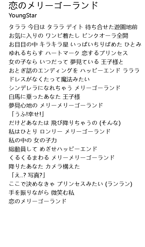 | [00:25.17] | ゆれるちらす ハートマーク 恋するプリンセス |