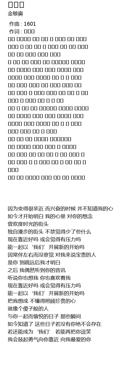 | [00:44.160] | 나 혼자 걷는 거리는 왠지 부족하게만 느껴졌지 |