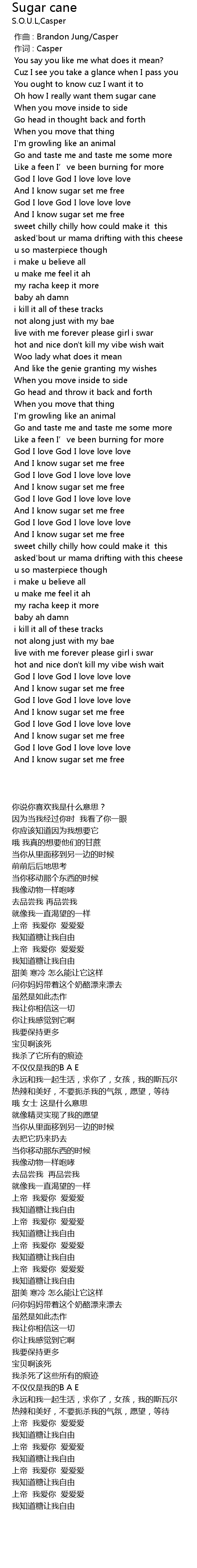| [00:14.351] | Oh how I really want them sugar cane |