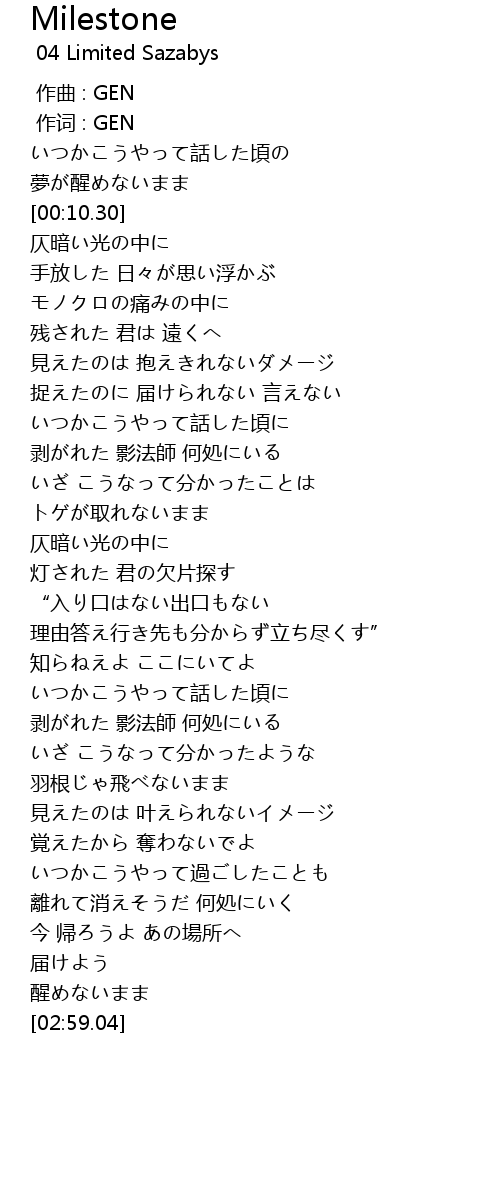 | 歌曲 | Milestone |