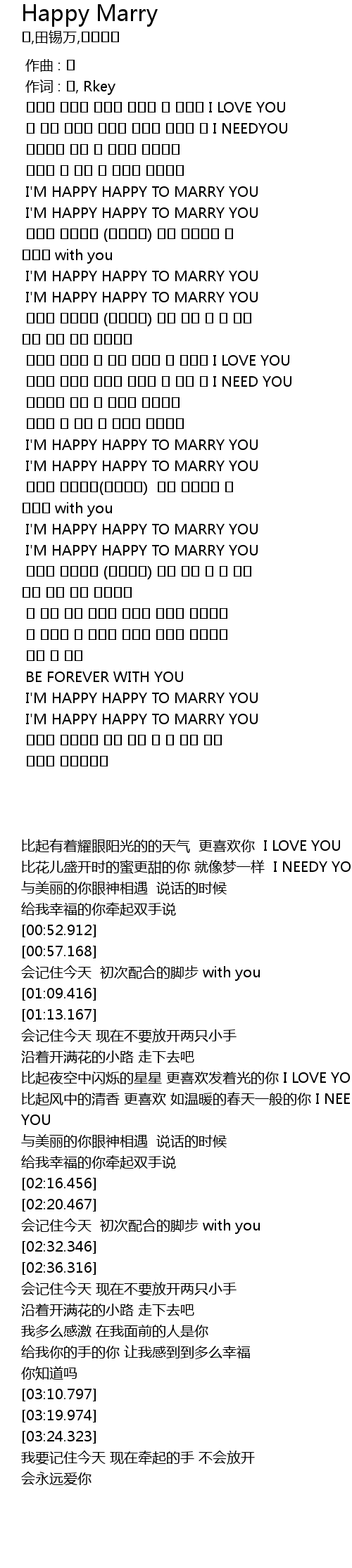 | [03:19.974] | I' M HAPPY HAPPY TO MARRY YOU |