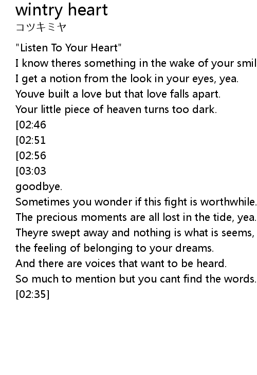 | [03:14][02:51][01:45][00:49] | Listen to your heart theres nothing else you can do. |