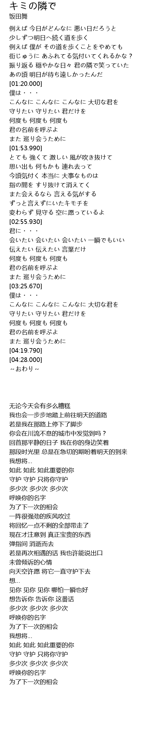 | [00:55.740] | 振り返る 穏やかな日々 君の隣で笑っていた |