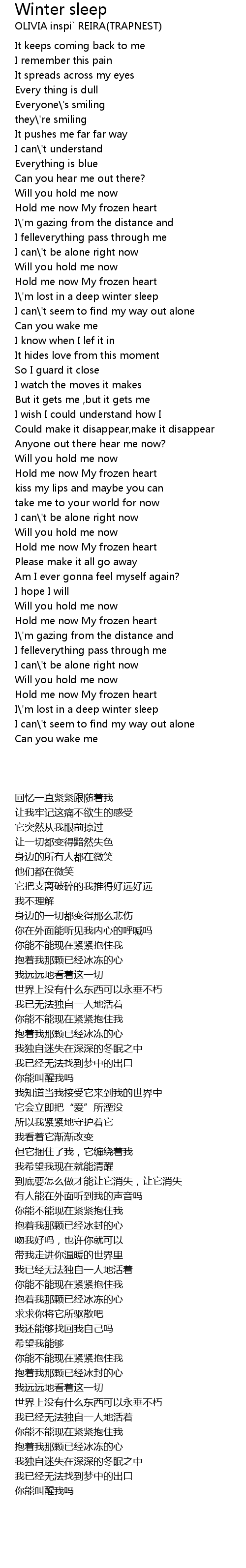 I\'m lost in a deep winter sleep |