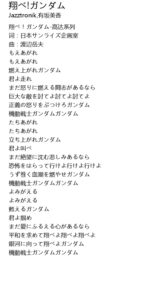| [02:57.956] | 銀河に向って翔べよガンダム |