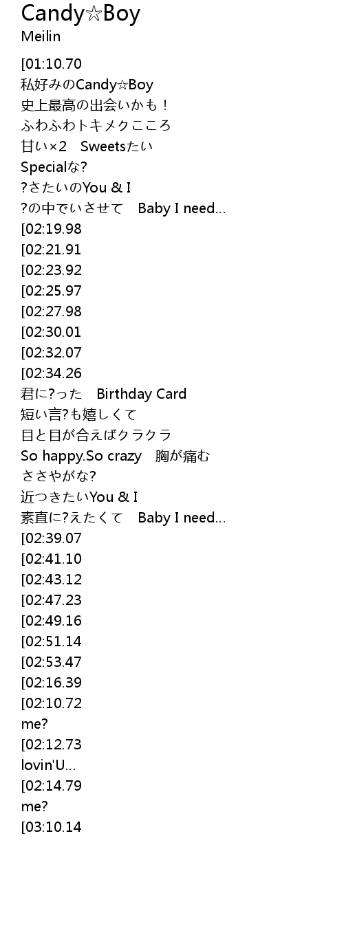 | [00:14.00][01:10.70][03:28.52] | MEILINCandy Boy |