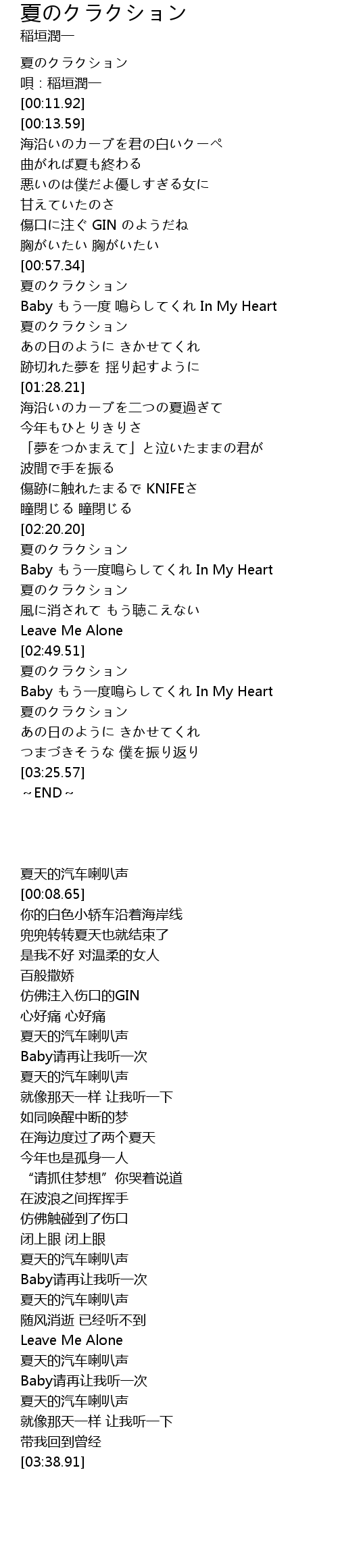 | [03:09.17] | 夏のクラクション |