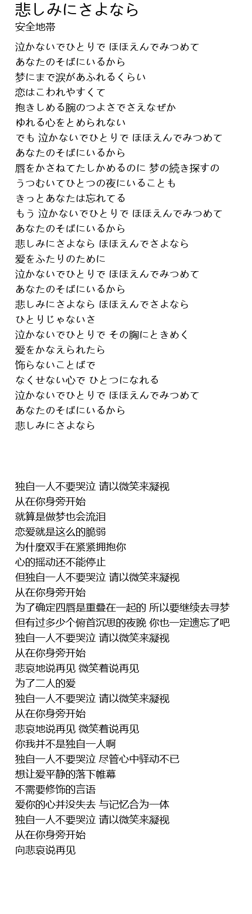 | [02:54.790] | 悲しみにさよなら ほほえんでさよなら |