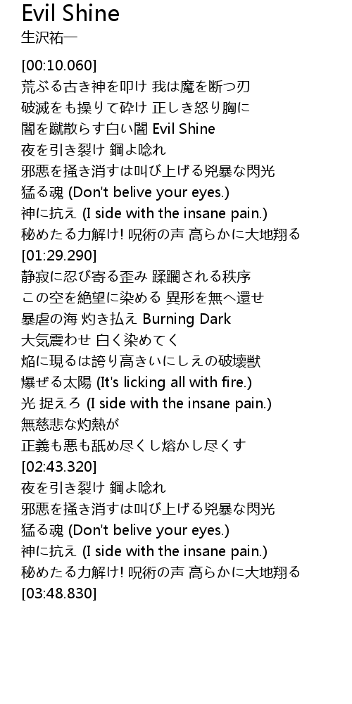 | [03:30.820] | 神に抗え (I side with the insane pain.) |