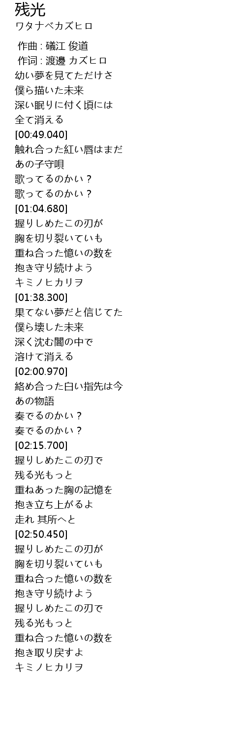 | [00:01.00] | 作词 : 渡邊 カズヒロ |
