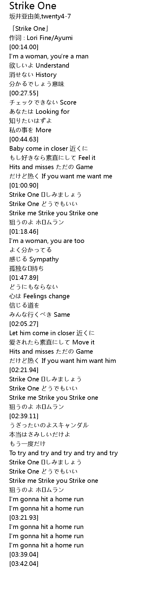 | [03:01.06] | Strike One どうでもいい |