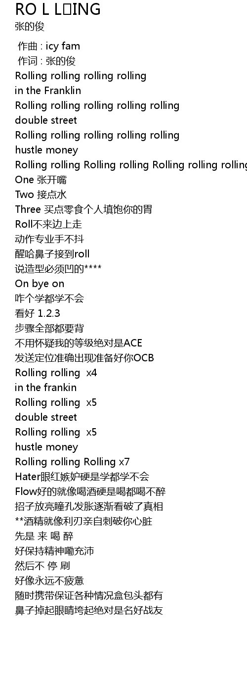 | [01:02.84] | Rolling rolling x5 |