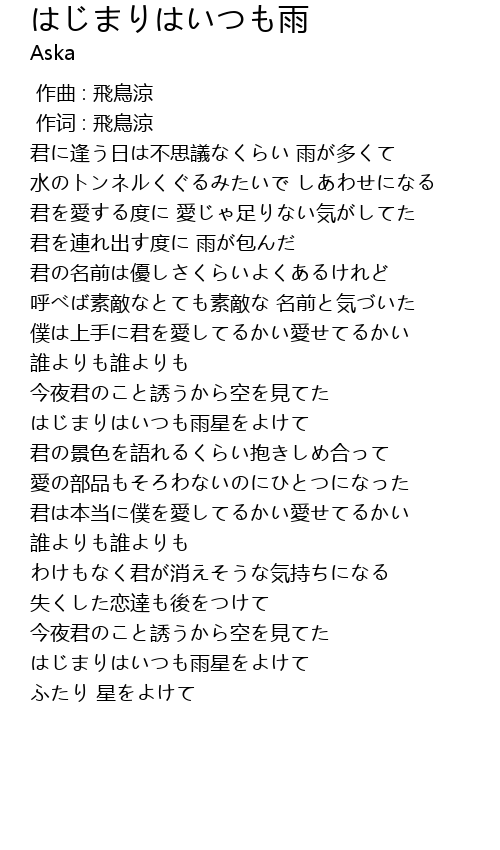 | [03:52.17] | はじまりはいつも雨星をよけて |